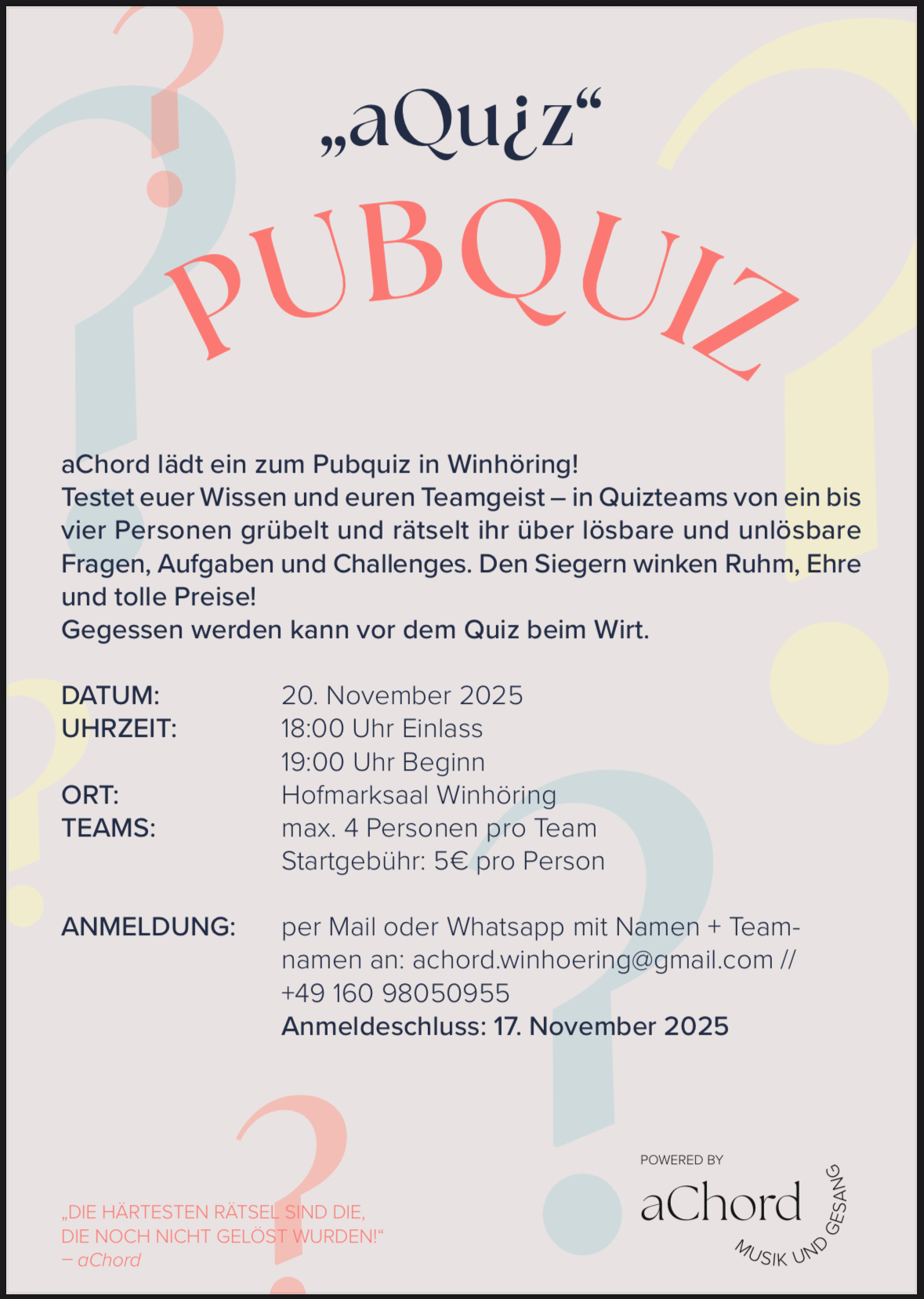Wir freuen uns auf Euer kommen. (Externe Events bitte direkt beim jeweiligen Veranstalter anfragen.)